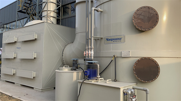 二級和一級噴嘴的密度、噴液壓力和吸收酸性(堿性)氣體的濃度范圍都不一樣。噴淋段和填料段的兩相接觸過程也是傳熱和傳質的過程。并控制空塔的流速和停留時間,以保證整個過程的穩定。排氣處理塔體上部為除霧段,氣體中的吸收液霧滴在此被清除,經過處理的潔凈空氣由廢氣凈化塔上的排氣管排放到大氣。