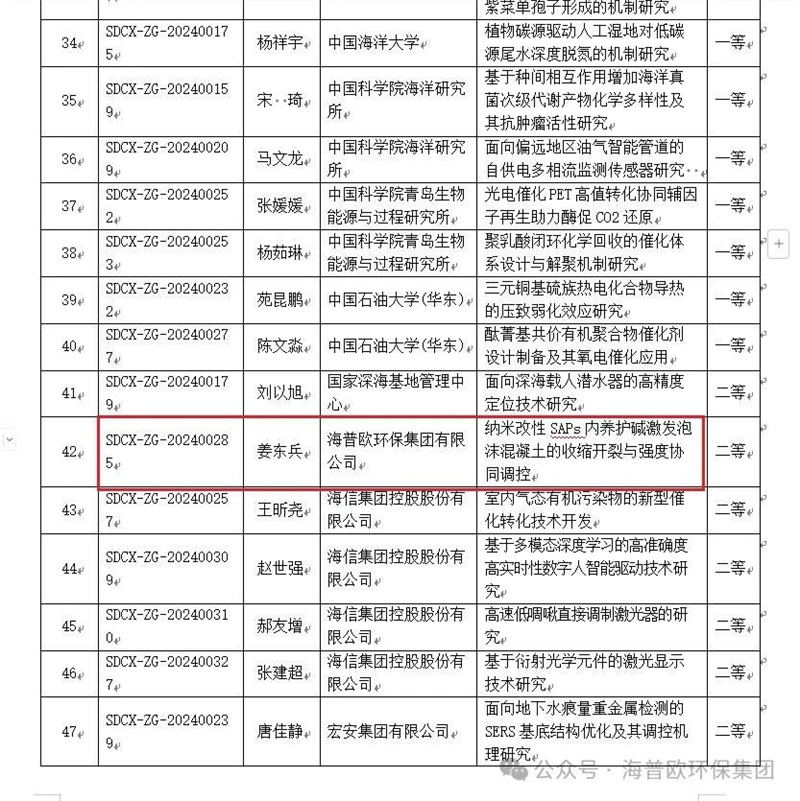2024 年 8 月,諸城人社廳傳來令人振奮的消息。山東省人社廳與科技廳聯合公布年度博士后創新項目獲資助人員名單,海普歐環保集團有限公司的姜東兵博士后榮耀在列。