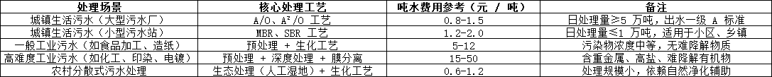 結(jié)合當(dāng)前政策要求、技術(shù)水平和區(qū)域差異,以下為不同場景下的污水處理費(fèi)用參考范圍(含核心支出,不含特殊補(bǔ)貼),供各主體核算時(shí)對標(biāo):