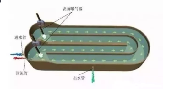 氧化溝具有推流特性,使得溶解氧濃度在沿池長方向形成濃度梯度,形成好氧、缺氧和厭氧條件。通過對系統合理的設計與控制,可以取得較好的脫氮除磷效果。