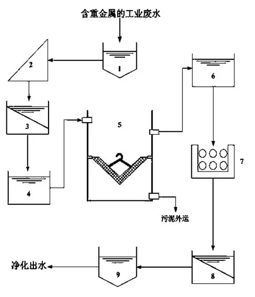 工業廢水中除重金屬的處理系統,屬于環境保護中的廢水處理領域。