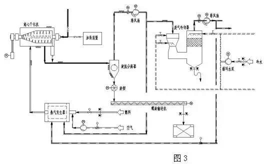 如圖3所示,離心干化機(jī)系統(tǒng)工藝流程圖。